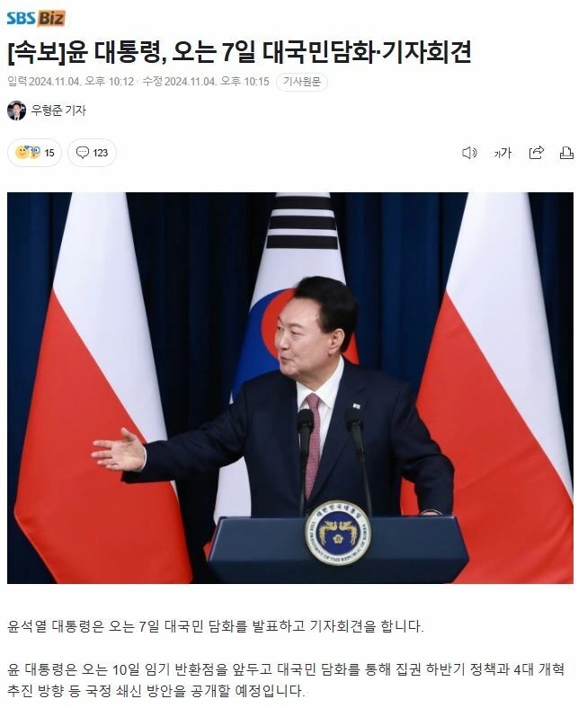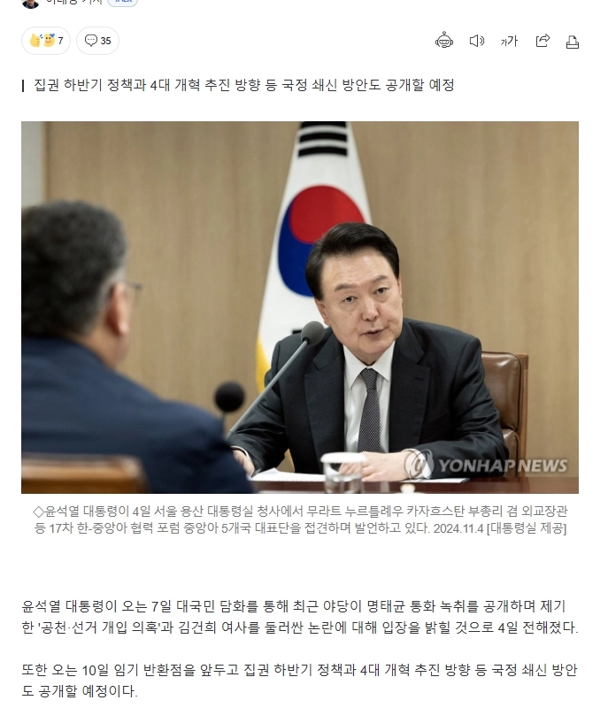 19:51 11/5/2024 [Breaking News] President Yoon will address the public and press conference on the 7th