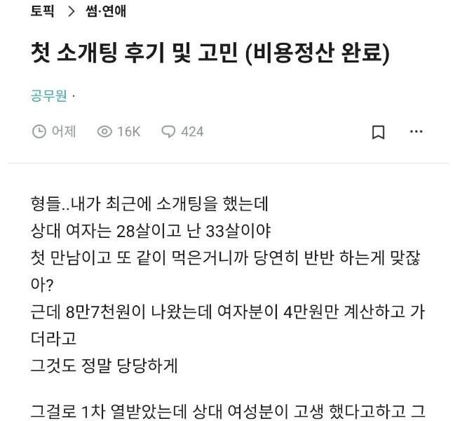 04:07 02/18/2023 It was only 4,8500 won for a blind date meal, and I heard that you were a doenjang girl.