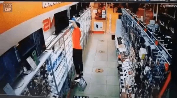 Catastrophe gif while installing a TV.