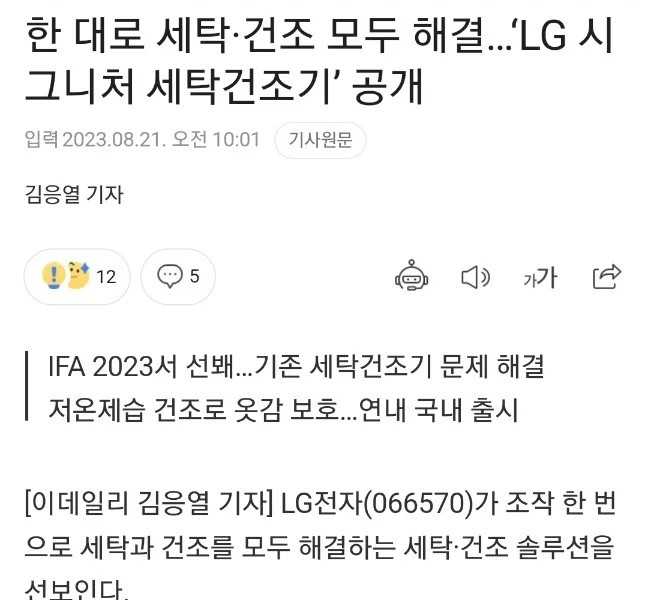 05:31 08/22/2023 LG’s recent development of a laundry dryer that combines washing machines and dryers
