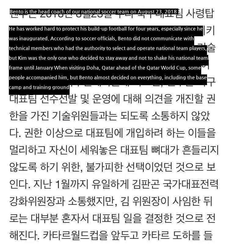 12:41 12/7/2022 While continuing the identity and strength completed by coach Bento of the Korea Football Association, a coach is needed to reinforce the deficiencies