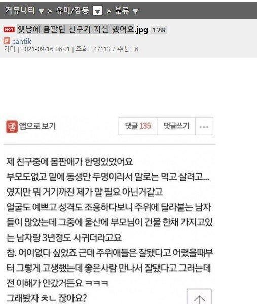 A friend of mine who used to sell her body committed suicide.