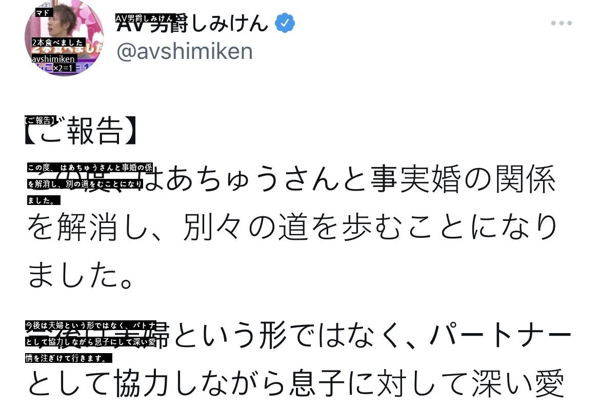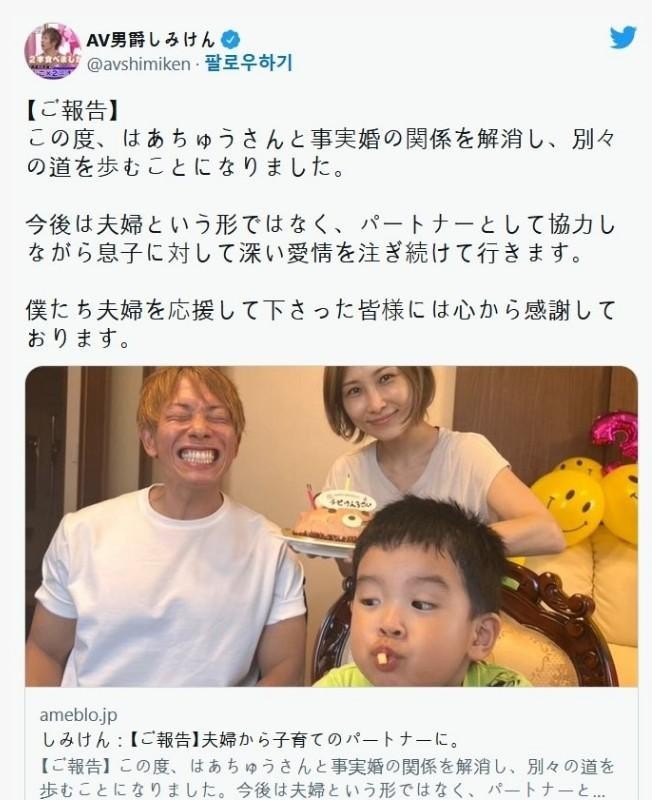 e남Male actor Shimiken actually announced his divorce