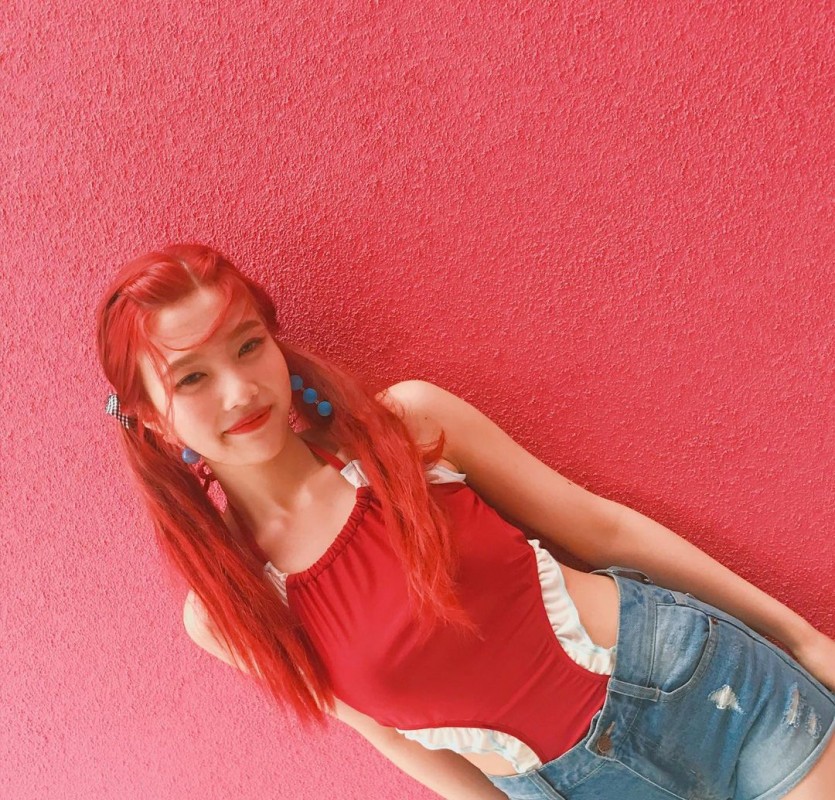 Joy’s side-padded red swimsuit