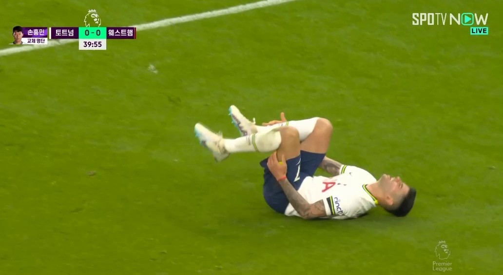 Tottenham vs West Ham Aromero is sitting down.