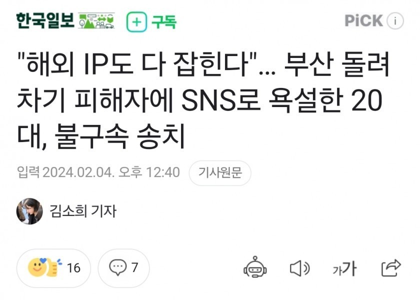 23:54 02/4/2024 Sent without detention in his 20s who cursed on social media to the victim of turning around in Busan