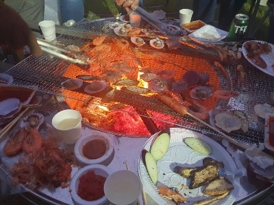 Seafood grilled from the company after work