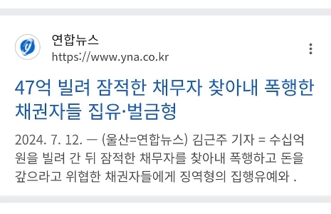 06:53 11/13/2025 Creditors who found and assaulted a debtor who had borrowed KRW 4.7 billion and disappeared, were seized and fined