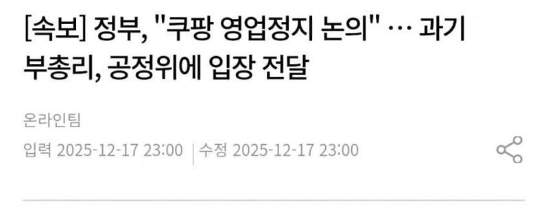 08:07 12/17/2025 [Breaking News] Ministry of Science and Technology “Discussing with the Fair Trade Commission whether to suspend Coupang’s business”