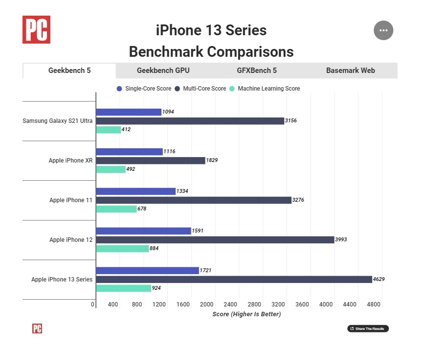 iPhone 13 benchmark results.
