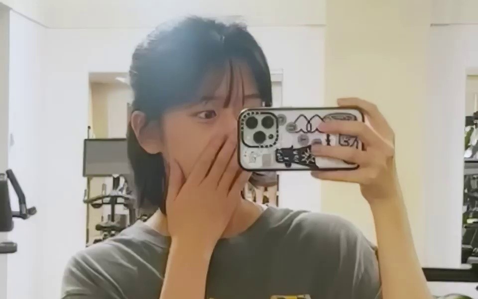 21:40 01/8/2024 Sweatshirt that goes up every time you raise your arms. T-shirt, biker shorts, lower body line, eye, Ahn Yujin