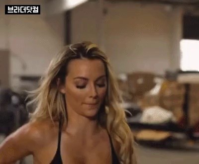 a blonde who flips her hair back.