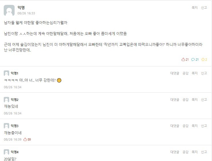 00:58 11/27/2023 The 女 of a freshman at Chungnam National University who thinks her boyfriend is too harsh