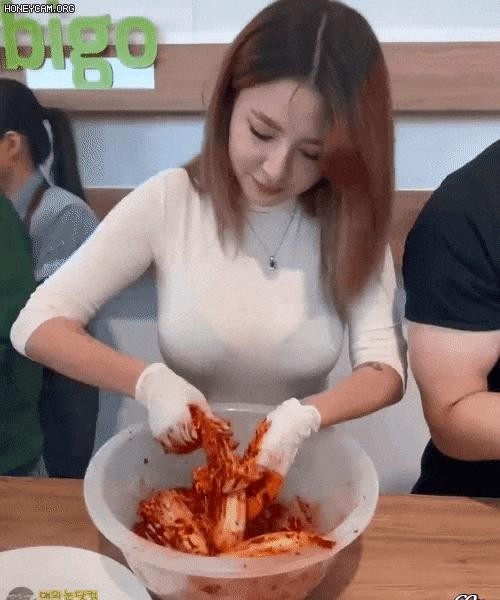 Shannon’s sexy bra that’s transparent inside the kimchi.
