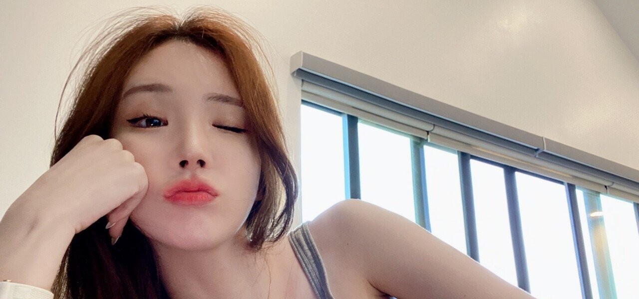 Son Ming is dancing in a sky blue CK bra.