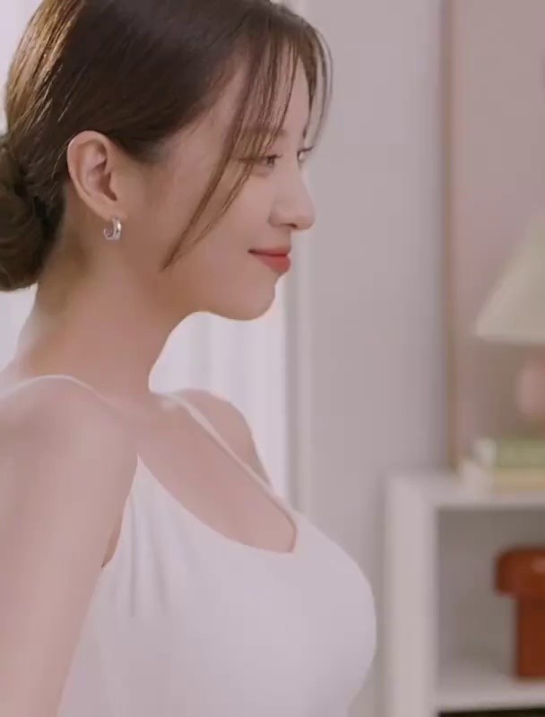 a self-conscious woman showing off her abs.