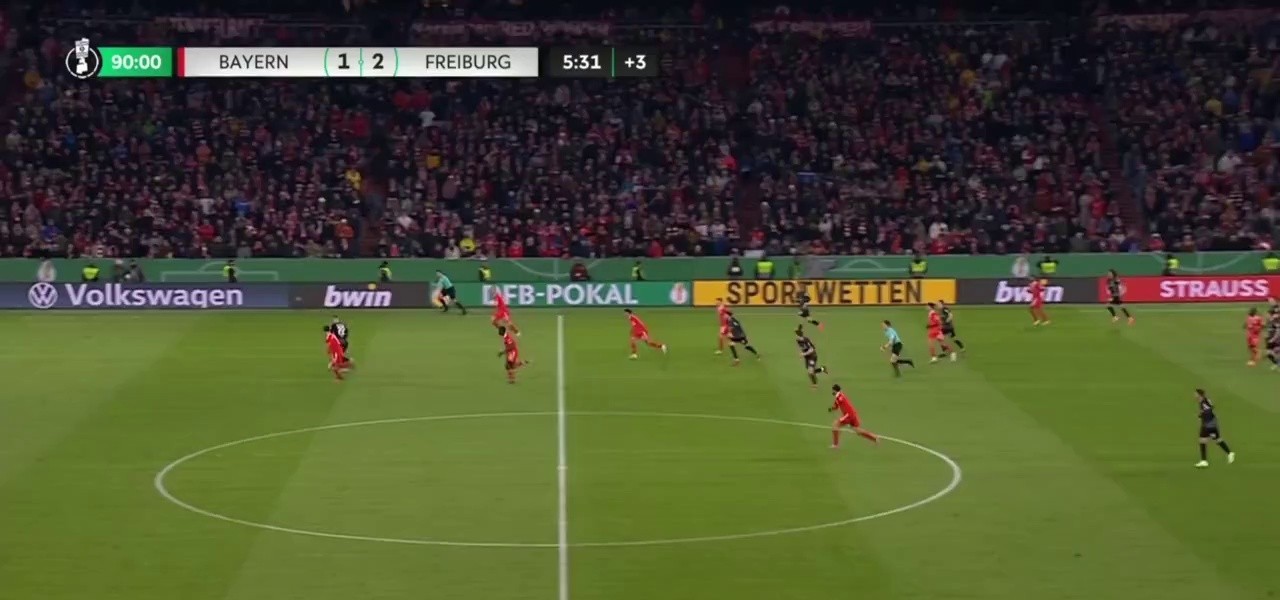 (SOUND)Bayern vs Freiburg Freiburg Theater PK come-from-behind goal