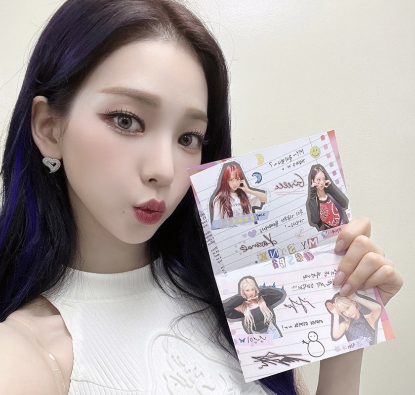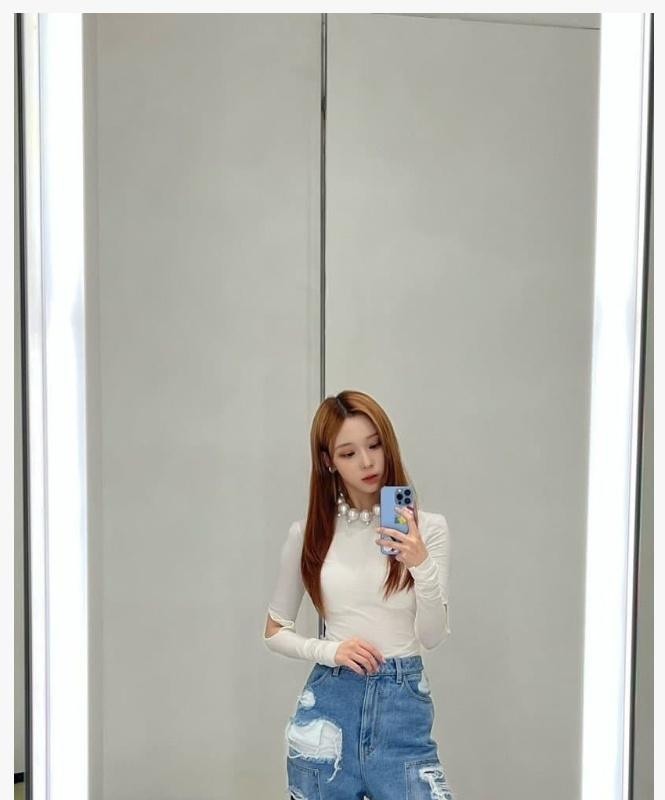 Karina looks like she’s doing a lookbook at home
