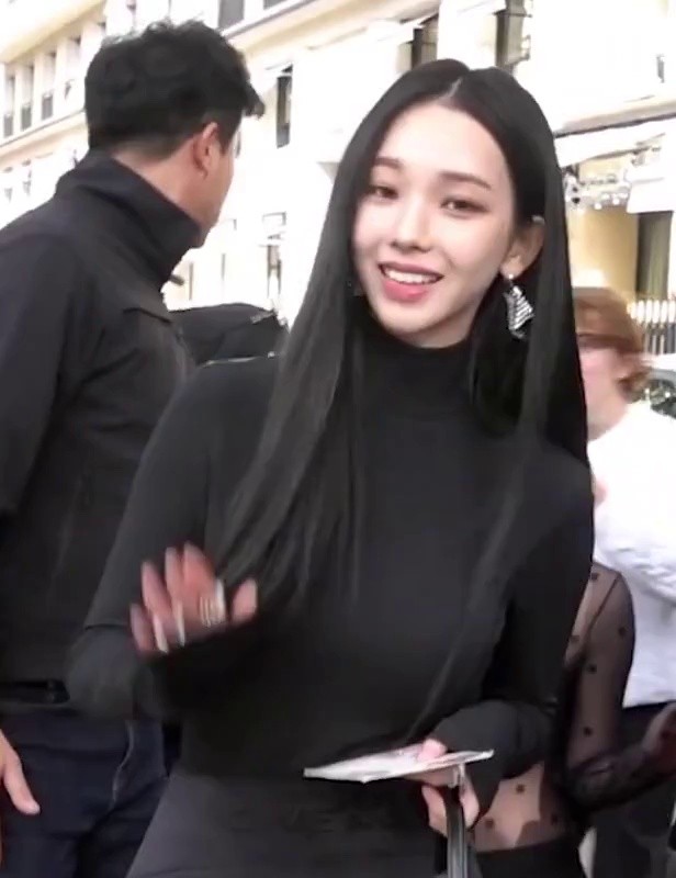 Carina in all black in Paris