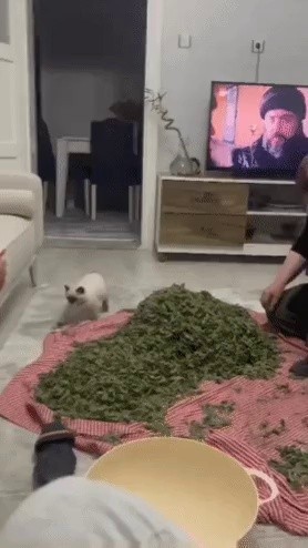 If you turn on the TV at night, the cat comes running to beat you
