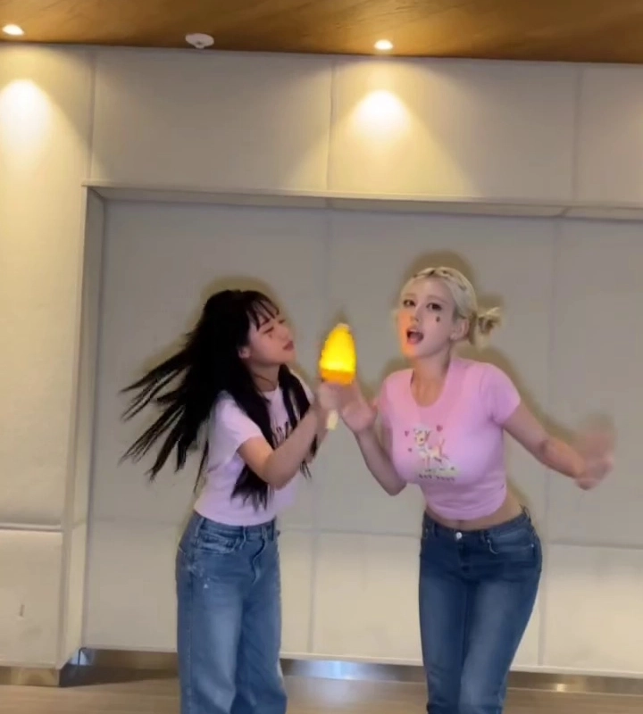 12:31 11/20/2024 (SOUND)Jeon So-mi dancing proudly with Yoo-jeong, heavy pink short-sleeved T-shirt, breast volume
