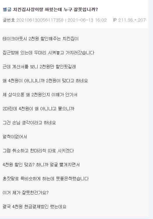 I had a fight with the owner of the chicken restaurant, whose fault is it?