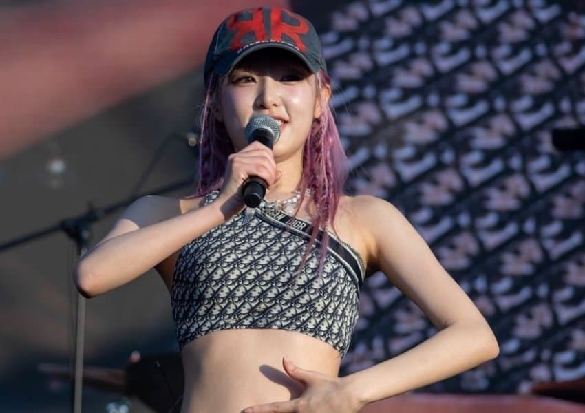 Sleeveless Choi Yena with a duck band on her nose