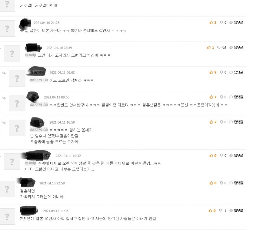 Marriage concerns, comments.