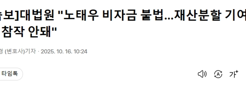 08:05 10/16/2025 [Breaking News] Supreme Court “”””Roh Tae-woo’s slush fund is illegal… It cannot be taken into account as a contribution to property division.””””