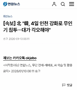00:25 01/10/2026 [Breaking News] North Korea and South Korea must prepare for the price of drone infiltration due to Incheon Ganghwa on the 4th