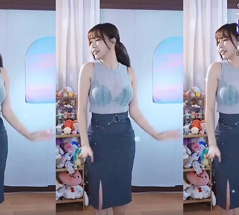 07:27 08/31/2024 (SOUND)Kwon Eunbi light blue ribbed knit denim skirt heavy chest feat. Sujeong Ryu Young’s Radio
