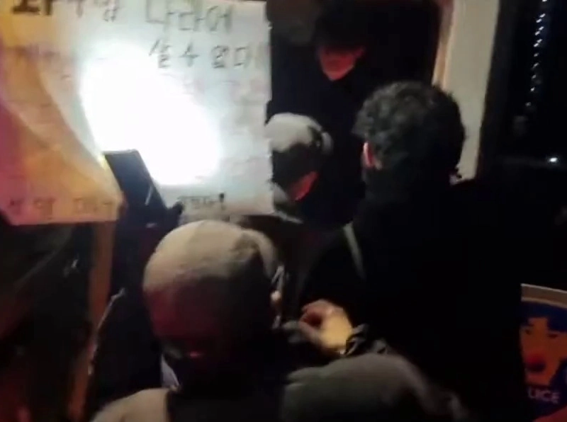 23:06 01/18/2025 (SOUND)-2-picture rioters hijack a police vehicle and attempt to pull the police away