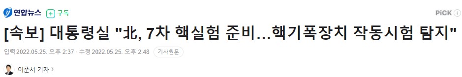 11:04 05/25/2022 News flash: Presidential office: North Korea’s 7th nuclear test preparation detonator in operation