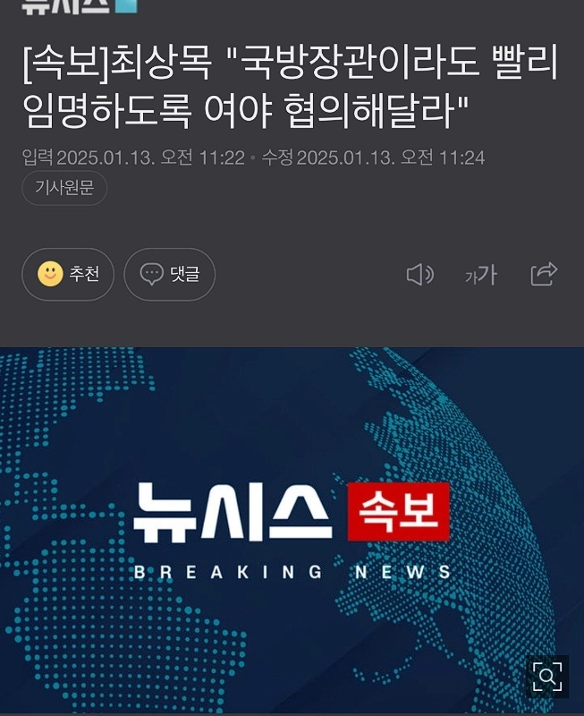 01:20 01/13/2025 [Breaking News] Sang-Mok Choi “”””Request for consultation between ruling and opposition parties to quickly appoint Minister of National Defense