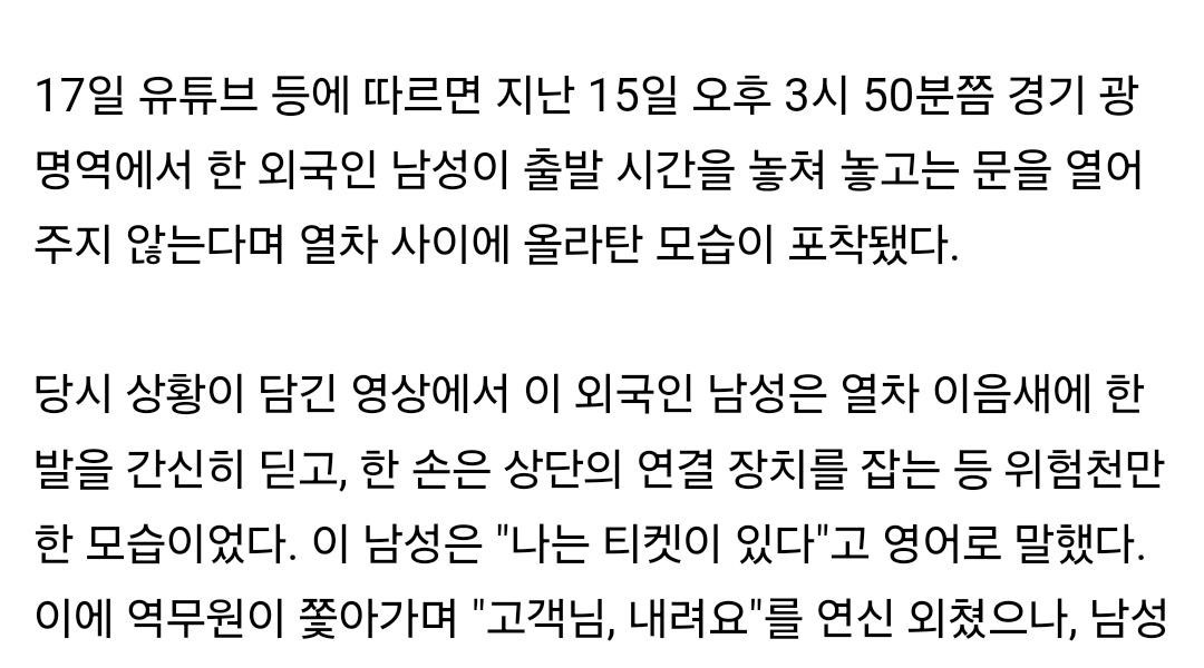 03:50 12/18/2023 When I told him to get off the KTX-hanging foreigner who left, he said, “I have a ticket.”