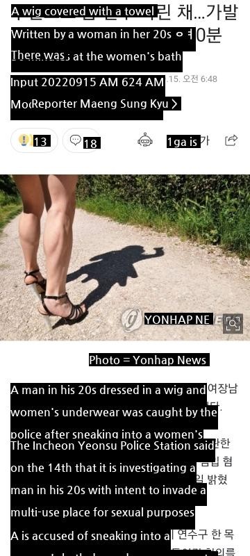 06:46 09/15/2022 dressing up as a woman in her 20s with a wig. 여 I went into a women’s bath and fell asleep