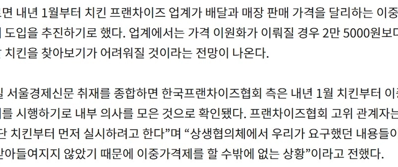 04:15 11/25/2024 Korea Franchise Association to promote dual pricing system for delivery chicken early next year