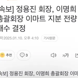 10:52 01/11/2025 [2nd report] Chairman Jeong Yong-jin and Chairman Lee Myung-hee purchase all shares of E-Mart