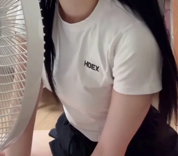 08:57 09/1/2024 Fromis_Nine Lee Na-kyung, cooling off her sweat with a fan, puffy breasts in white crop top