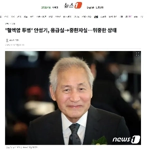 08:44 12/31/2025 ”Suffering from blood cancer” Ahn Seong-gi, emergency room → intensive care unit… critical condition