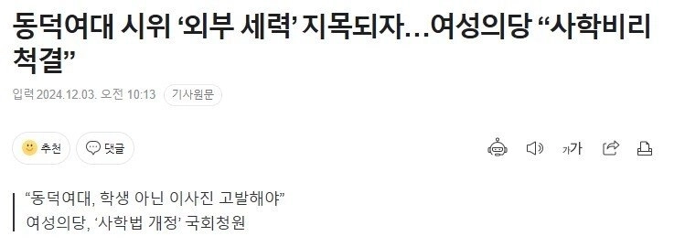 03:26 12/3/2024 When the Dongduk Women’s University protest was pointed out as an ‘external force’… Women’s Party “Eradicate corruption in private schools”