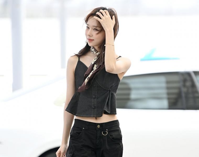 Espa Giselle’s dizzying breastbone that turns her head in a military dress