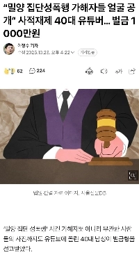 00:52 10/24/2025 “”””The faces of the perpetrators of the Miryang group sexual assault revealed”””” YouTuber in his 40s. Fine of 10 million won