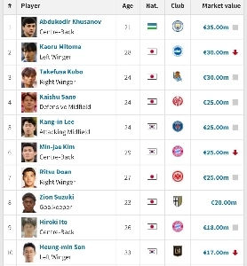 Transfer Market) Updated Top 10 Expected Ransom Prices in Asia