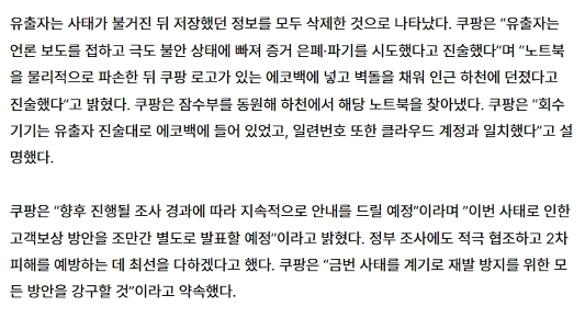 03:14 12/25/2025 [Breaking News] Coupang “Leaked employee only saved 3,000 account information and did not transmit it externally”