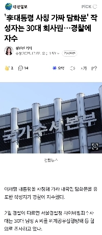 14:55 12/2/2025 The author of ”Fake statement impersonating President Lee” is an office worker in his 30s… surrender to the police