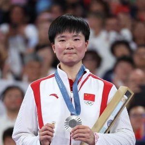 04:58 08/7/2024 He Bingjiao, who played in the final against Ahn Se-young, brought it to the awards ceremony.
