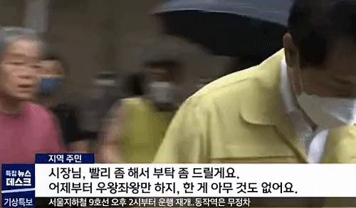 12:43 08/14/2022 Breaking news: Na Kyung-won and her party had a fight with merchants and residents while they were cleaning up after the flood