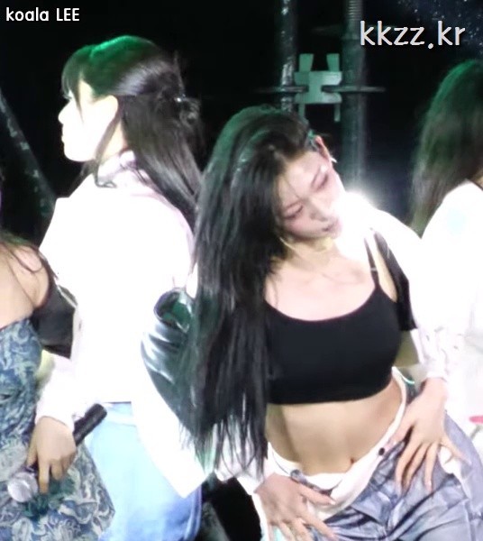 03:18 08/24/2024 (SOUND)Baek Ji-heon of Fromis Nine with red band and white bra top with sexy erect muscles and abs