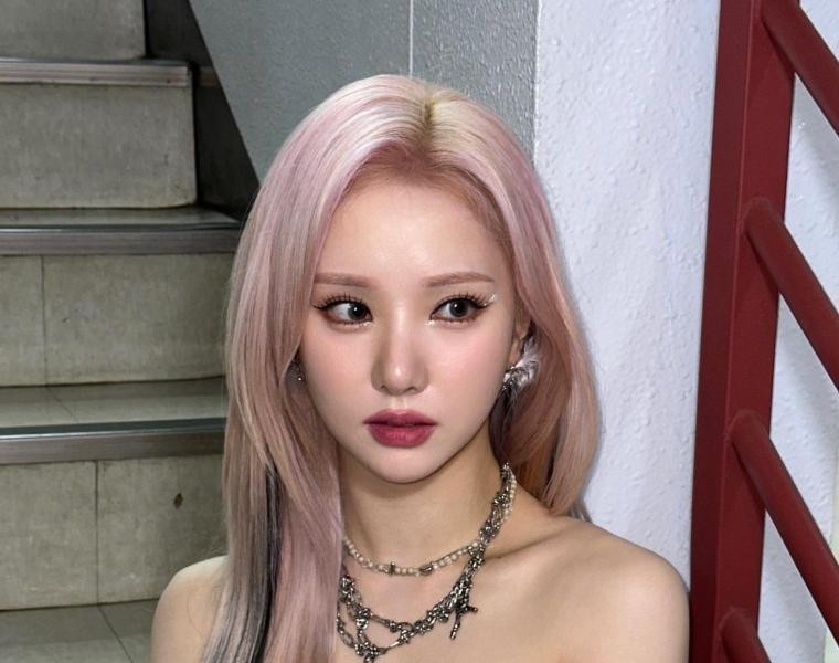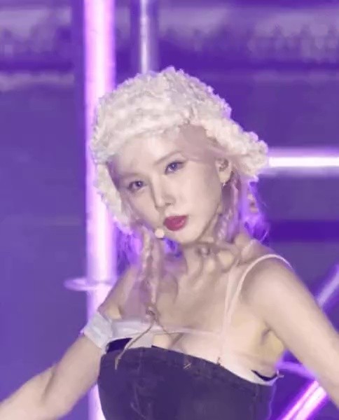 07:40 11/3/2023 Bibi Ji Eunha’s breast bone, lying face down in a purple lingerie look under her desk